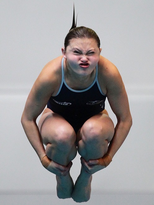 During the Olympic period, televisions globally buzz with anticipation for the games. Yet, the athletic competition isn’t the only intriguing aspect of the Olympics; the image attached provides a clue to our point. Unluckily or luckily, a snapshot of a woman in the middle of her diving routine, unintendedly captured by the cameraman at the most inappropriate moment, created a classic piece that might very well mark her memory for everyone. This concept of freezing divers just on the cusp of breaking the water surface could even evolve into an Olympic event of its own.