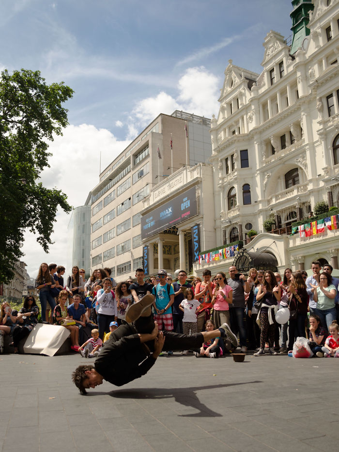 Although it appears as if he is defying gravity with his dance, that isn’t actually the case. He’s simply immersing himself in his routine, shifting steps, captivated in demonstrating his impressive talents.