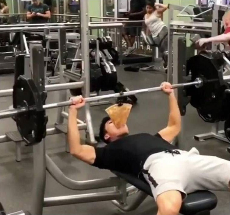 There are individuals who prefer to munch on a protein bar before they kick-start their workout regimen. Nevertheless, you might have never come across someone eating during their exercise session. Apparently, this man believes that consuming pizza while operating a gym machine will burn off all the calories he’s ingesting. Perhaps he’s employing the slice of pizza as an incentive to increase the weight he’s lifting. It’s certainly intriguing to observe someone combining exercise and pizza consumption at the gym. Interestingly enough, eating during weightlifting could be quite risky. Following the workout, the gentleman may have vomitted due to this unusual consumption habit.